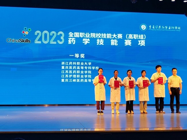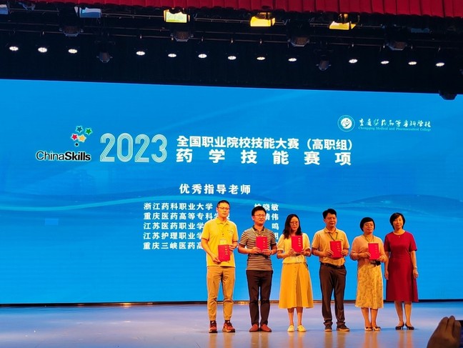 9月21-23日,2023年全国职业院校技能大赛(高职组)药学技能赛项在重庆医药高等专科学校开赛,药学院党总支书记孟丽带队参赛。来自全国28个省、市、自治区的53名选手经过两天的激烈角逐,我校药学院付宇芹同学勇夺一等奖!蒋鸣老师获优秀指导老师称号!