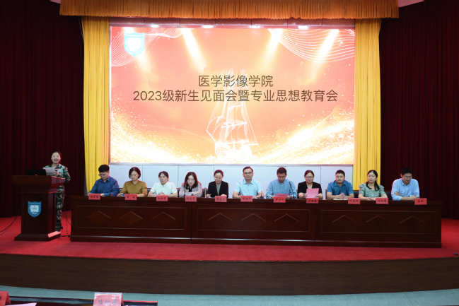 为了帮助新生尽快熟悉校园环境,适应大学生活,融入新的集体,9月25日,医学影像学院举行2023级新生见面会暨专业思想教育会。学院党政班子、专业带头人、内设机构负责人、全体辅导员和2023级新生参加了会议。会议由学院党总支副书记董安定主持。