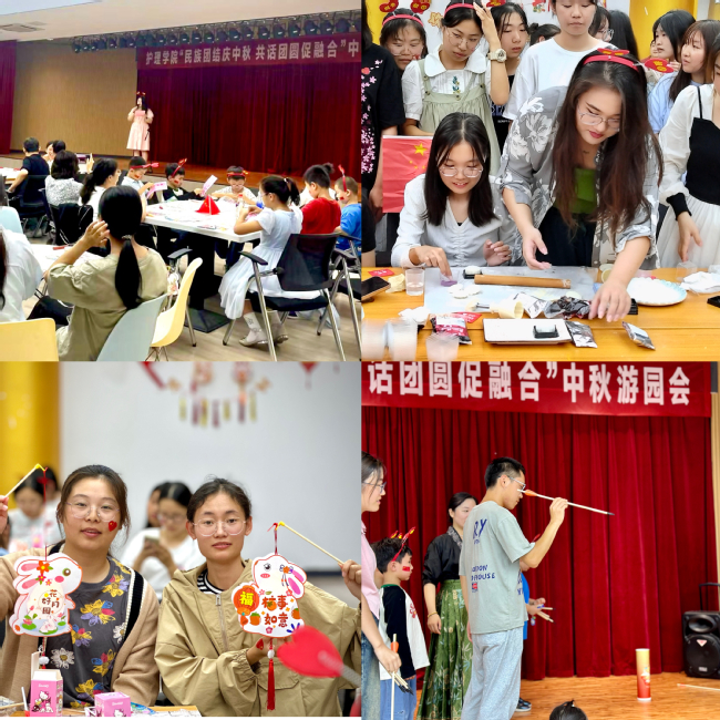 为深化民族团结进步教育,弘扬中华优秀传统文化,帮助在校学生感受中秋国庆浓厚的节日氛围,9月29日,护理学院在艺术中心小礼堂举办“民族团结庆中秋,共话团圆促融合”中秋游园会活动。护理学院党总支书记魏志明、党总支副书记吴君、副院长郭玲玲和护理学院全体专兼职辅导员以及100多名在校学生欢聚一堂。