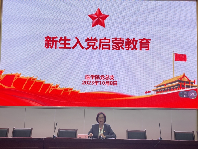 入党启蒙教育是新生入学教育的重要环节,为教育引导2023级新生积极向党组织靠拢,10月8日下午,医学院党总支在国际会议中心开展新生入党启蒙教育。医学院党总支书记叶宁出席了活动,2023级专兼职辅导员及全体新生参加了活动。会议由医学院组织员刘坪楚主持。