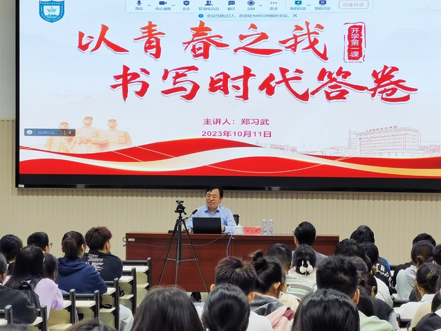 为了引导新生爱党爱国爱校,明确努力方向和奋斗目标,扣好人生第一粒扣子,10月11日,根据学校党委统一安排,在校党委书记陈国忠、院长殷忠勇的带领下,校领导们深入二级学院,为2023级新生讲授“开学第一课”。