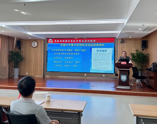 培训现场,专家以“高校网络舆论危机分析与应对技巧”为主题,结合近期发生的舆论事件分析了当前舆论态势的复杂性,围绕高校舆情呈爆发式增长的原因、高校网络舆情危机的主要类型以及不同类型网络舆情危机的处置方法三个方面展开,通过“理论基础+案例分析”的形式,对舆情的研判、处置等内容进行详细讲解,并对典型案例进行深入剖析。授课内容深入浅出,通俗易懂,具有较强的针对性和实用性。大家纷纷表示,在培训中学习了理论知识、收获了专业技能,受益匪浅。