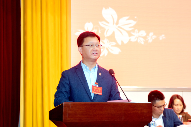 市总工会副主席周小进代表市总工会向大会的召开表示热烈的祝贺,向一直以来关心、重视、支持工会工作的党政领导表示衷心的感谢。他指出,江苏医药职业学院工会,在学校党委的正确领导下,紧紧围绕工会职能,坚持与学校发展同频共振,与广大教职工同心共鸣,在推动民主政治建设、助力教职工建功立业、提升教职工幸福指数等方面,做了大量卓有成效的工作。他对即将产生的新一届工会委员会提出三点希望:一要提高政治站位,坚持正确方向;二要切实履行职责,展现新的作为;三要强化自身建设,永葆生机活力。