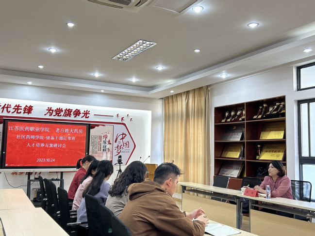 为进一步深化产教融合,推进校企共育技能人才,10月24日下午,老百姓大药房连锁股份有限公司与我校共建“社区药师学院--储备干部订单班”人才培养方案研讨会在药学院B306会议室举行。老百姓大药房连锁股份有限公司人事总监张杨、药学院党总支书记孟丽、相关内设机构负责人、辅导员出席本次会议。会议由药学院党总支副书记李凤主持。