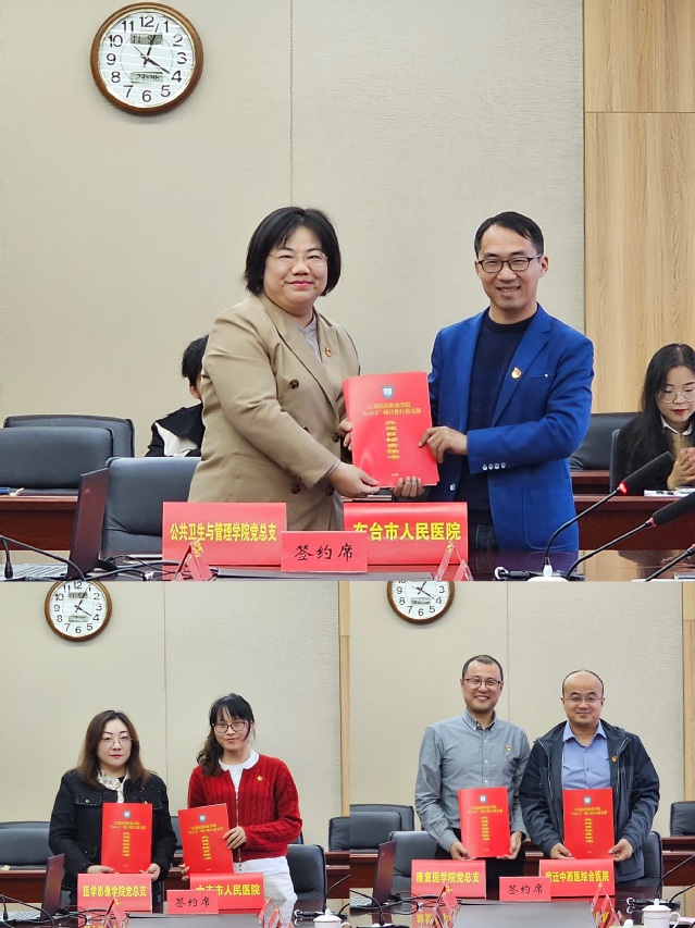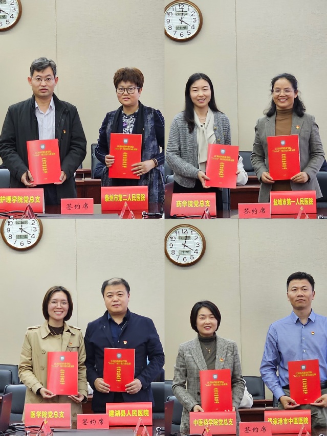 会上,徐成从共建项目背景、内容及主题等方面对“1+1+1”项目化行动支部共建作了详细介绍。医学院党总支书记叶宁、公共卫生与管理学院党总支书记顾娟分别围绕基层医疗人才培养,就当前行动支部的建设工作进行汇报。范卫东详细介绍了其党建“1+3+X”创新工作方法和“一支部一品牌”建设方案。泰州市第二人民医院临床班辅导员高月琴围绕“行动支部”冲在学生服务最前沿,聚焦学生成长,进行了精彩分享。随后,各党总支与7家共建校外临床教学基地签订“1+1+1”项目化行动支部共建目标责任书。