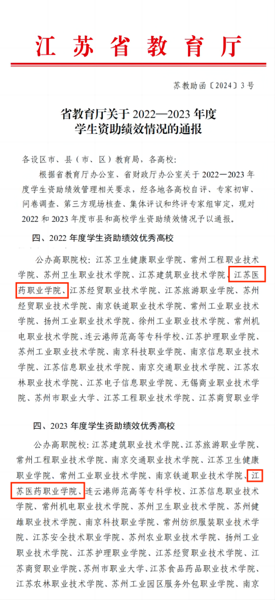 近日,江苏省教育厅下发《关于2022—2023年度学生资助绩效情况的通报》(苏教助函〔2024〕3号),经高校自评、专家初审、问卷调查、第三方现场核查、集体评议和终评专家组审定,我校2022年度和2023年度学生资助绩效评价均荣获优秀等次,为盐城地区唯一一所获此殊荣高校,也是我校第八次获此荣誉。
