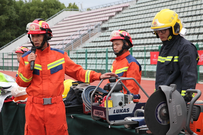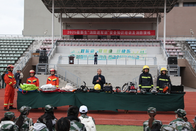 为深入推进校园消防安全宣传教育,切实增强新生的消防安全意识与应急处置能力,10月20日下午,我校保卫处、学生工作处联合盐南消防大队,在东园操场组织开展了“消防进军训”活动,为全体2025级新生带来了一堂生动而实用的“消防开学第一课”。活动由保卫处处长赵亮主持。