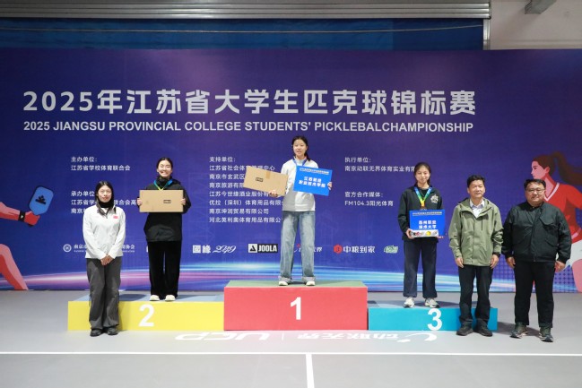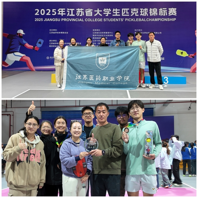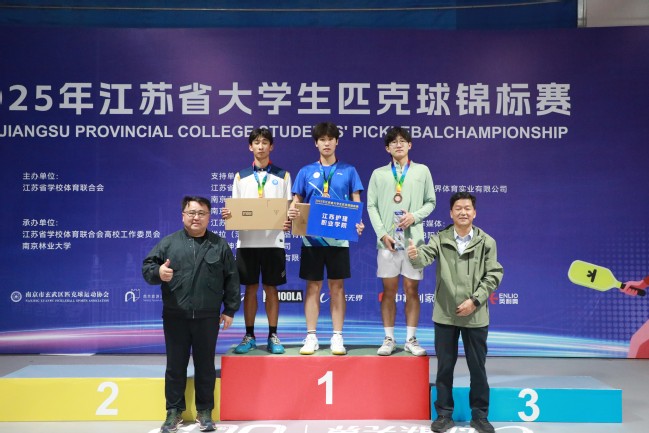 11月2日-5日,2025年江苏省大学生匹克球锦标赛在南京举行。比赛由江苏省学生体育协会主办,江苏省学生体育协会高校工作委员会和南京林业大学承办,来自江苏省37所高校,近200名运动员参赛。我校匹克球队首次征战锦标赛,获团体总分第二、单项1银1铜的优异成绩。