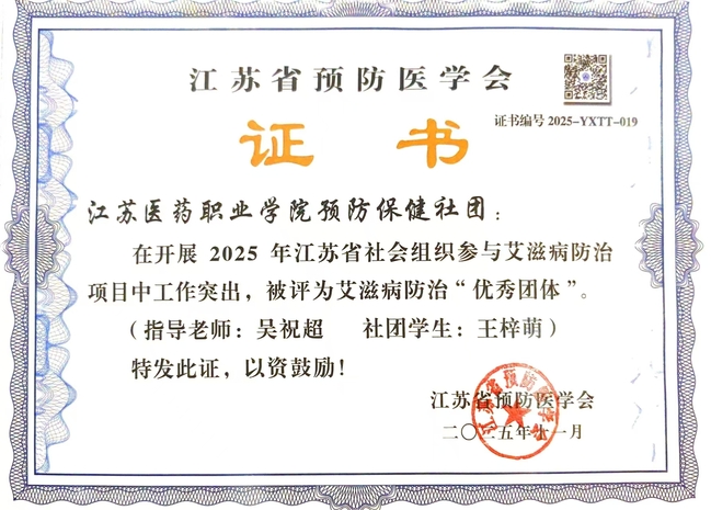 11月10-11日,由江苏省预防医学会、江苏省疾病预防控制中心主办的社会组织参与艾滋病防治项目推进会议在南京举行。我校预防保健协会在2025年度防艾工作中的突出表现,荣获艾滋病防治“优秀团体”称号,充分彰显了我校在青年防艾宣教领域的扎实成效与示范引领作用。
