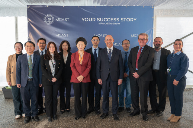 MCAST校长史蒂芬・维拉在致辞中对谭颖主任代表团的到访表示欢迎。他高度评价郑和学院建设成效,指出中方派出的教师团队及课程深受学生欢迎。他强调,近期在江苏医药职业学院揭牌的MCAST中心,作为该校在欧洲以外的首个常设机构,是深化合作的重要平台。他期待双方在“一带一路”框架下,持续推进师生交流与“教学+医疗+培训”一体化发展。