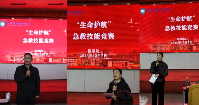 为确保赛事评审的专业性与权威性,本次大赛特邀特邀盐城市第一人民医院副院长边德志、第三人民医院教育处处长朱颖玲及盐城市急救医疗中心副主任施亚萍组成专家评委团,评委们从操作规范、应急反应、团队协作、人文关怀等维度进行综合考评,并作精彩点评。他们高度肯定了参赛选手在竞赛中的出色表现与专业成长,同时着重强调了急救工作中 “技术精度与人文温度并重” 的核心理念,鼓励同学们在精进技能的同时,始终坚守医者仁心,将人文关怀融入急救全过程。
